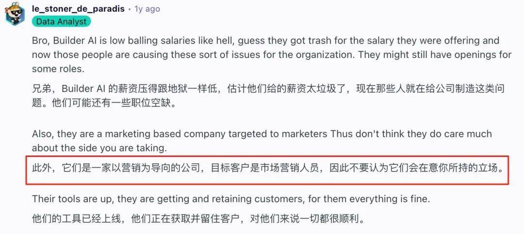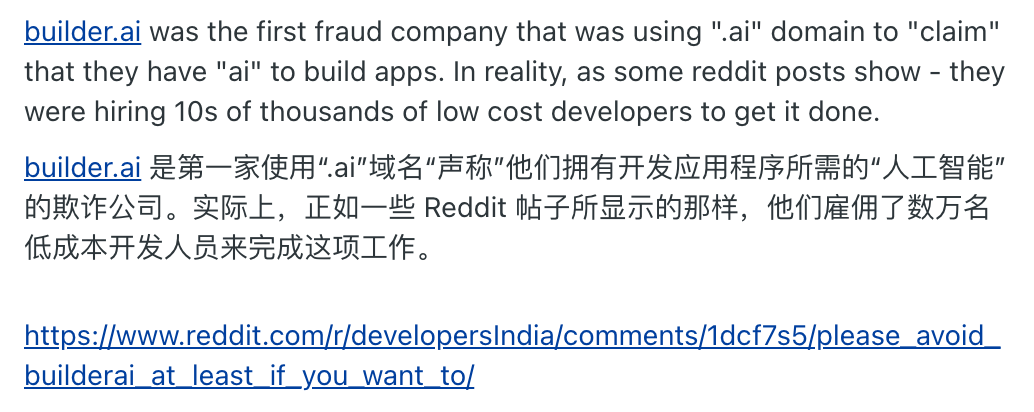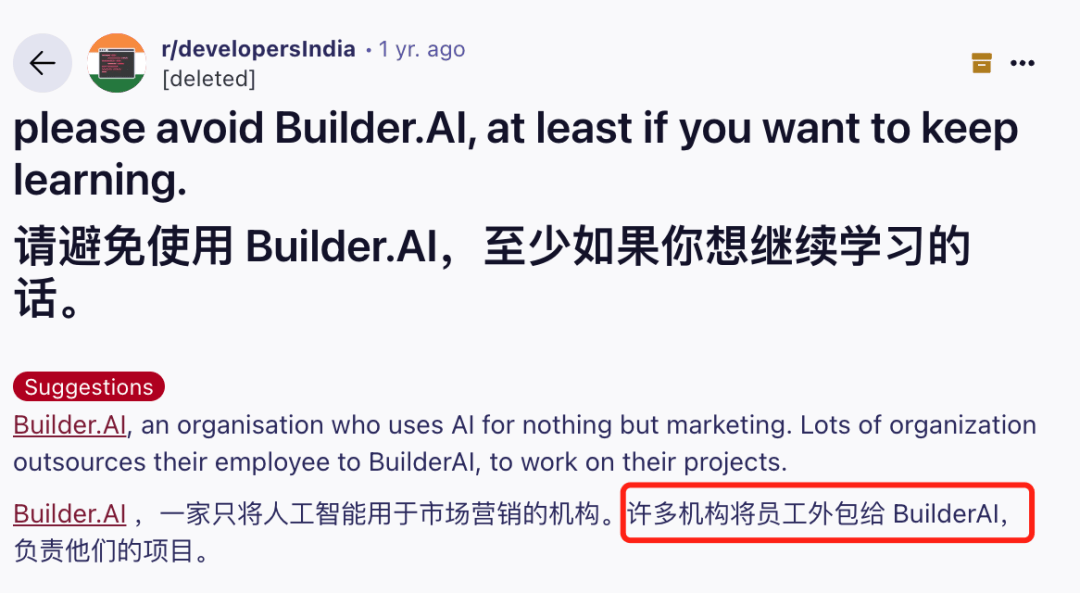 还有疑似在Builder.ai干过的员工出面表示,这就是一个营销公司,出来骗大伙钱的。