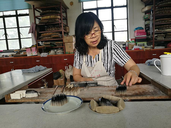 湖州市善琏湖笔厂工人王晓华在水盆车间加工兼毫笔头(6月7日摄)。2006年,湖笔制作技艺成为首批国家级非物质文化遗产。随着时代的发展,湖笔技艺也面临更多的挑战。“年轻人对传统手工不太感兴趣,主要是‘诱惑’太多。同时对传统文化没有准确认识,这就需要舆论引导,多介绍一下诸如湖笔这样的传统书写工具。”南京大学教授、国家非遗保护专家委员会委员徐艺乙说。今年3月,中国发布《中国传统工艺振兴计划》。业内人士认为,这将对振兴包括湖笔在内的传统手工艺起到重要的推动作用,但是其传承也应该遵循生产规律和市场规律。 “从业人员也不用太着急,关键是要把老祖宗留下的宝贝继承好。能够成为传统的,一定是竞争出来的。谁愿意用那种边写边掉毛的毛笔练字呢?”徐艺乙说。